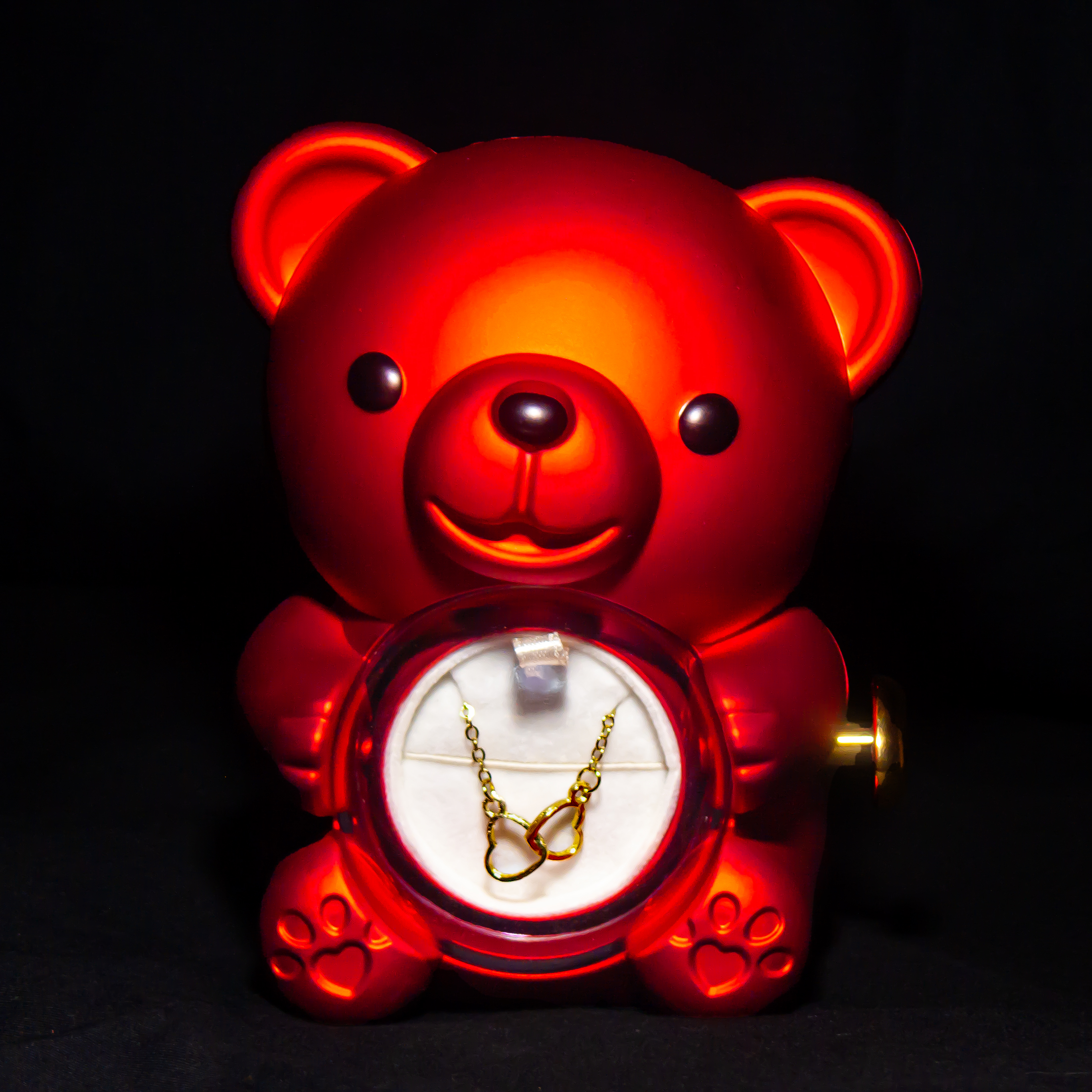 Fiecare urs este realizat cu atenție la detalii, de la iluminarea caldă până la trandafirul etern și lănțișorul delicat ascuns în interior.